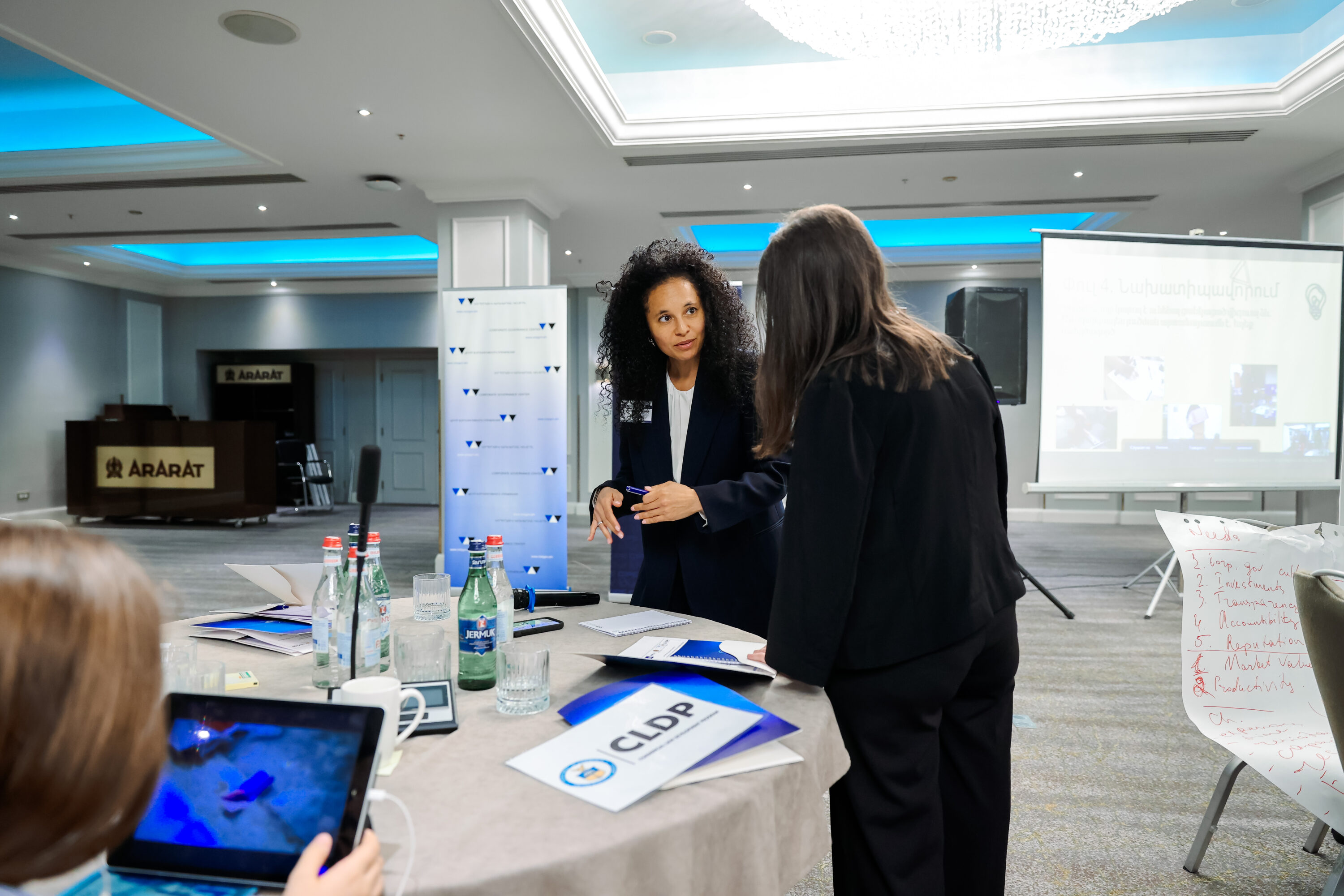 Աշխատաժողովում հայաստանյան առաջադեմ ընկերությունների տնօրենների խորհրդի նախագահները խոսեցին կորպորատիվ կառավարման մշակույթի ձևավորման ու ամրապնդման գործում խորհրդի նախագահի դերի մասին և թե ինչպես կարող է կորպորատիվ կառավարման նոր կանոնագիրքն ազդել դրա ընդլայնման վրա: