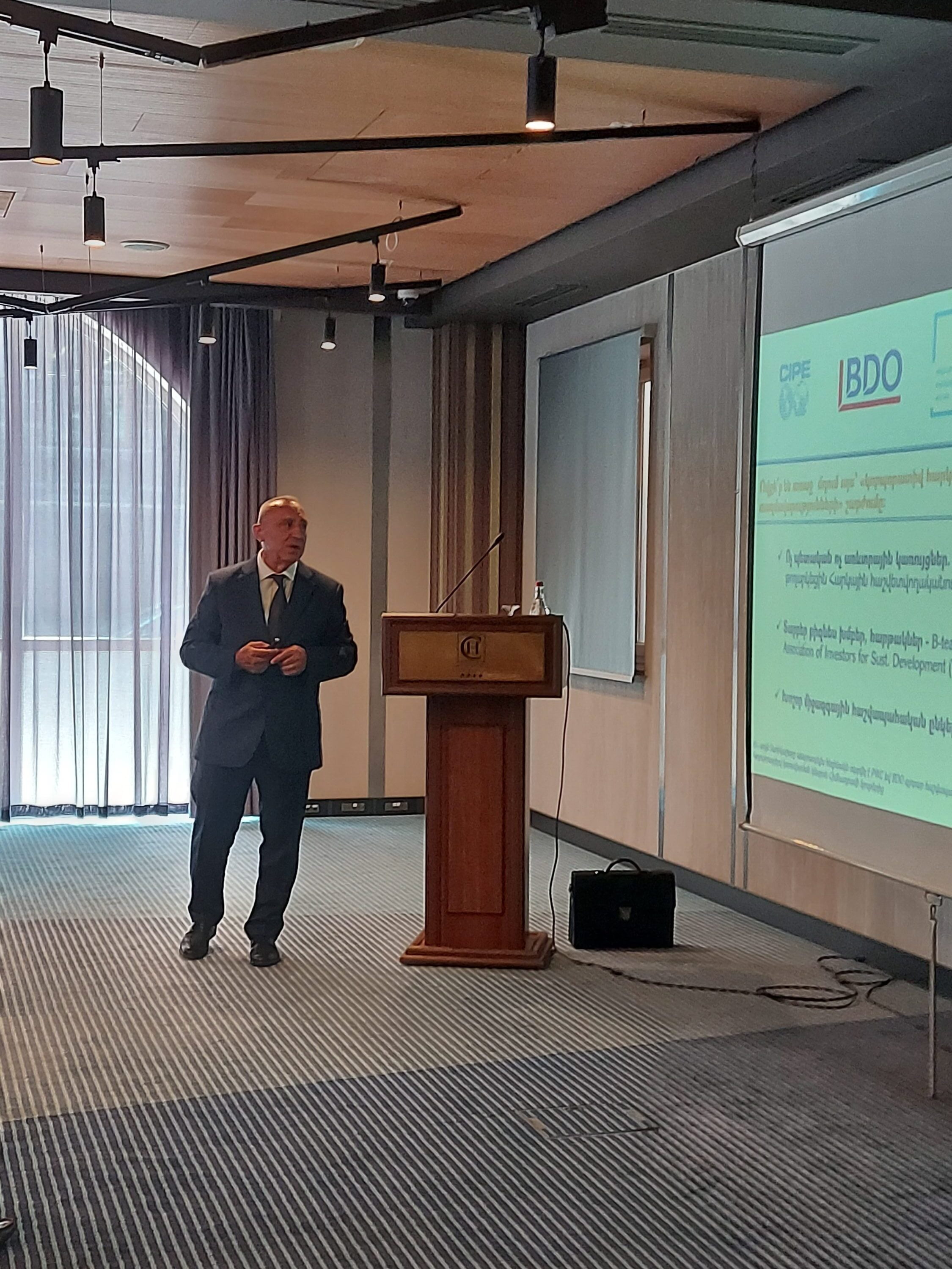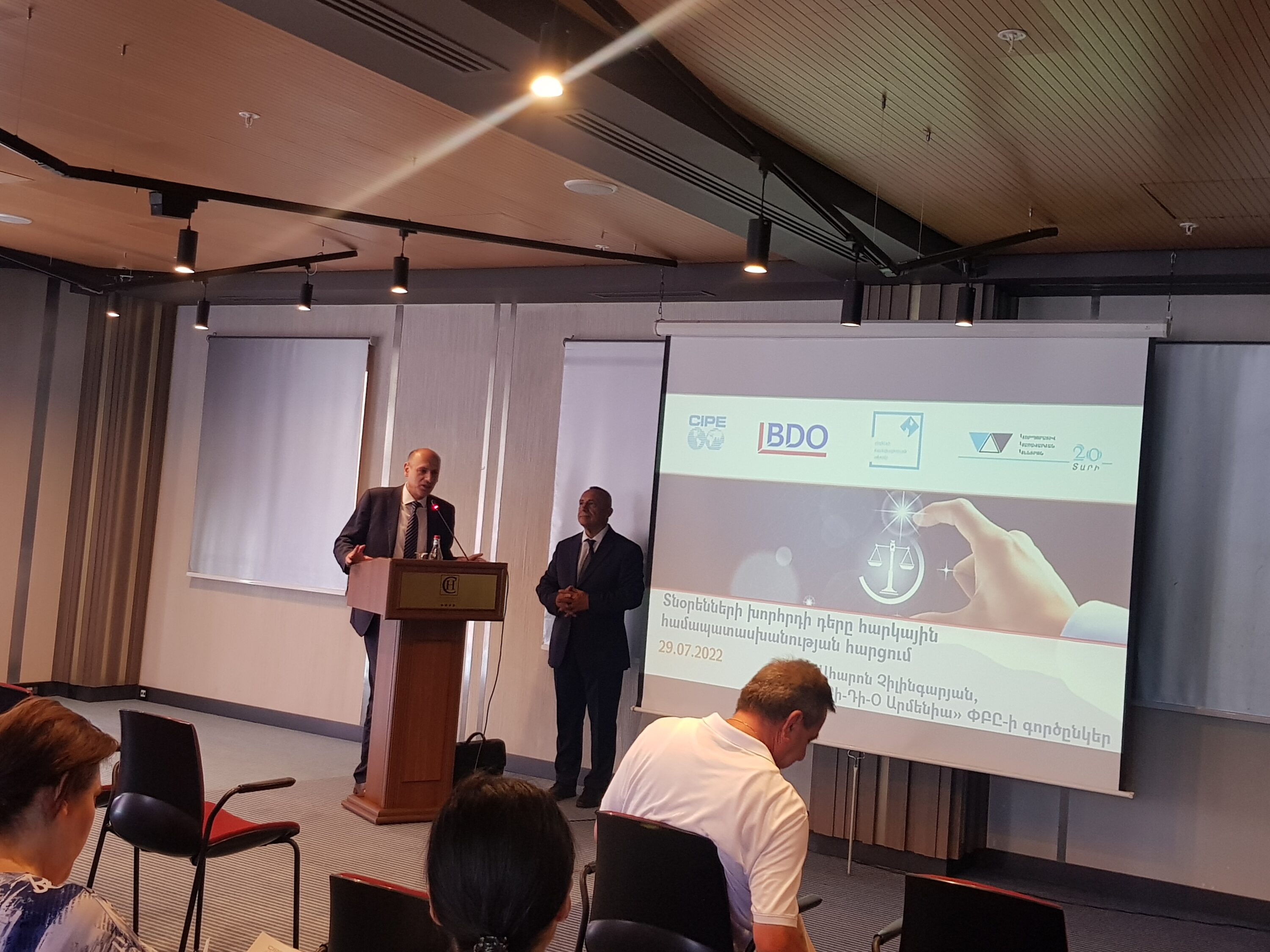 29 июля 2022 года Центр Корпоративного Управления в рамках Клуба Бизнес Этики организовал мастер-класс под названием «Роль совета директоров в соблюдении налогового соответствия», который провел Агарон Чилингарян, партнер БДО Армения, руководитель налоговой и юридической службы.